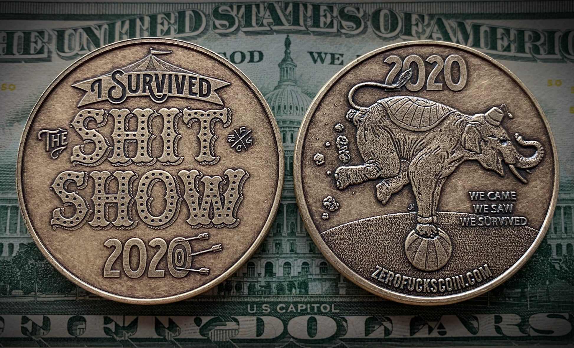 If there is ONE THING every human can agree on, it's that 2020 was an absolute shit show. While some bullshit continues to linger into 2021, we'd like to commemorate our specie's survival the only way we know how; with a new, fun, 39mm 1oz. coin!