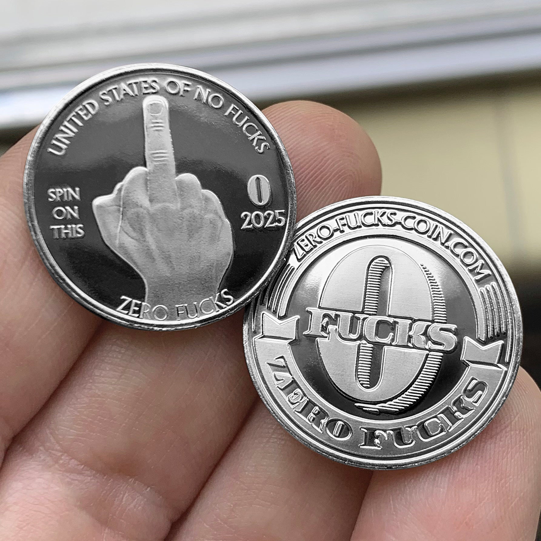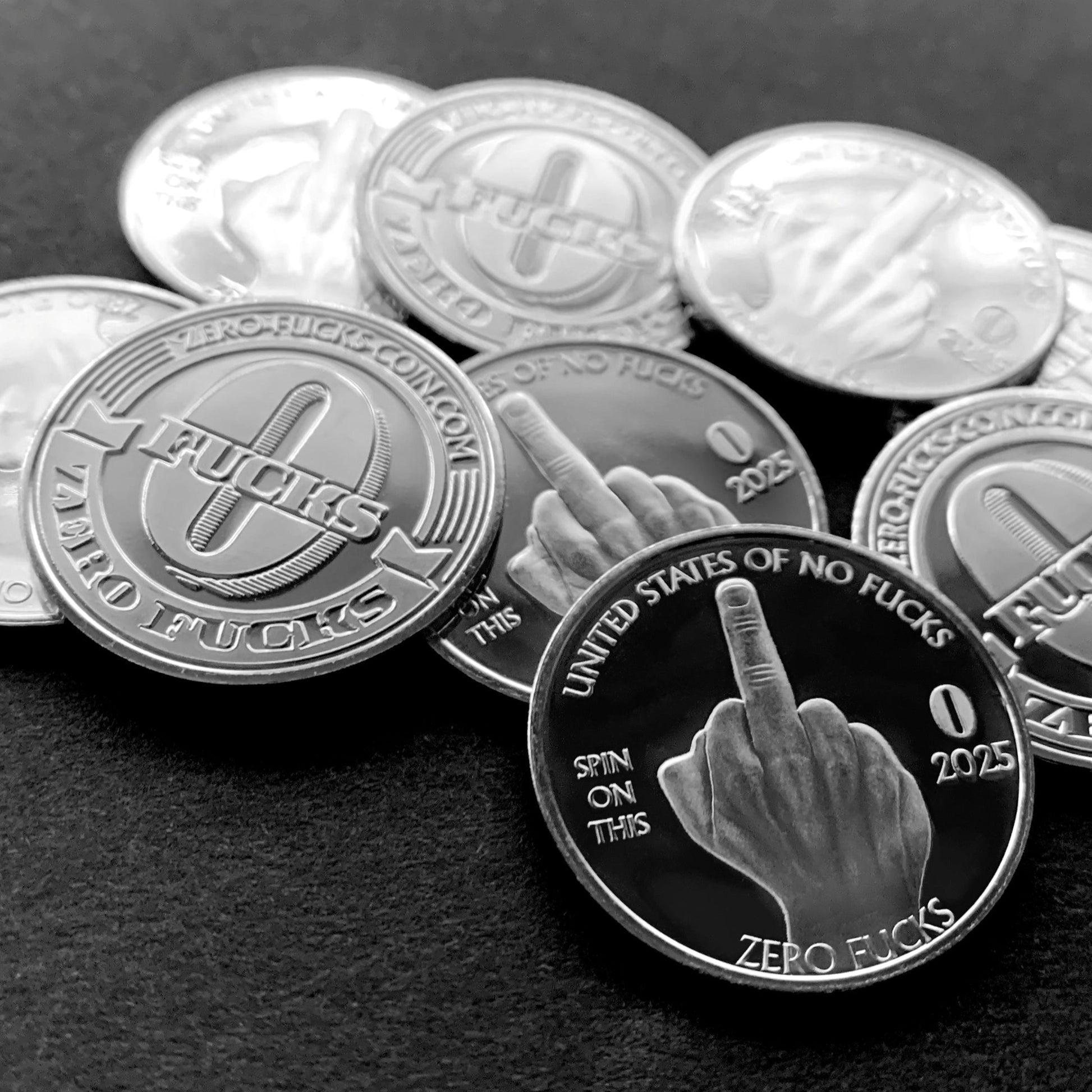 Whiny friends, bosses, co-workers, drunken strangers, significant others... No one is safe! If a picture is worth 1,000 words, this coin is surely worth zero fucks.