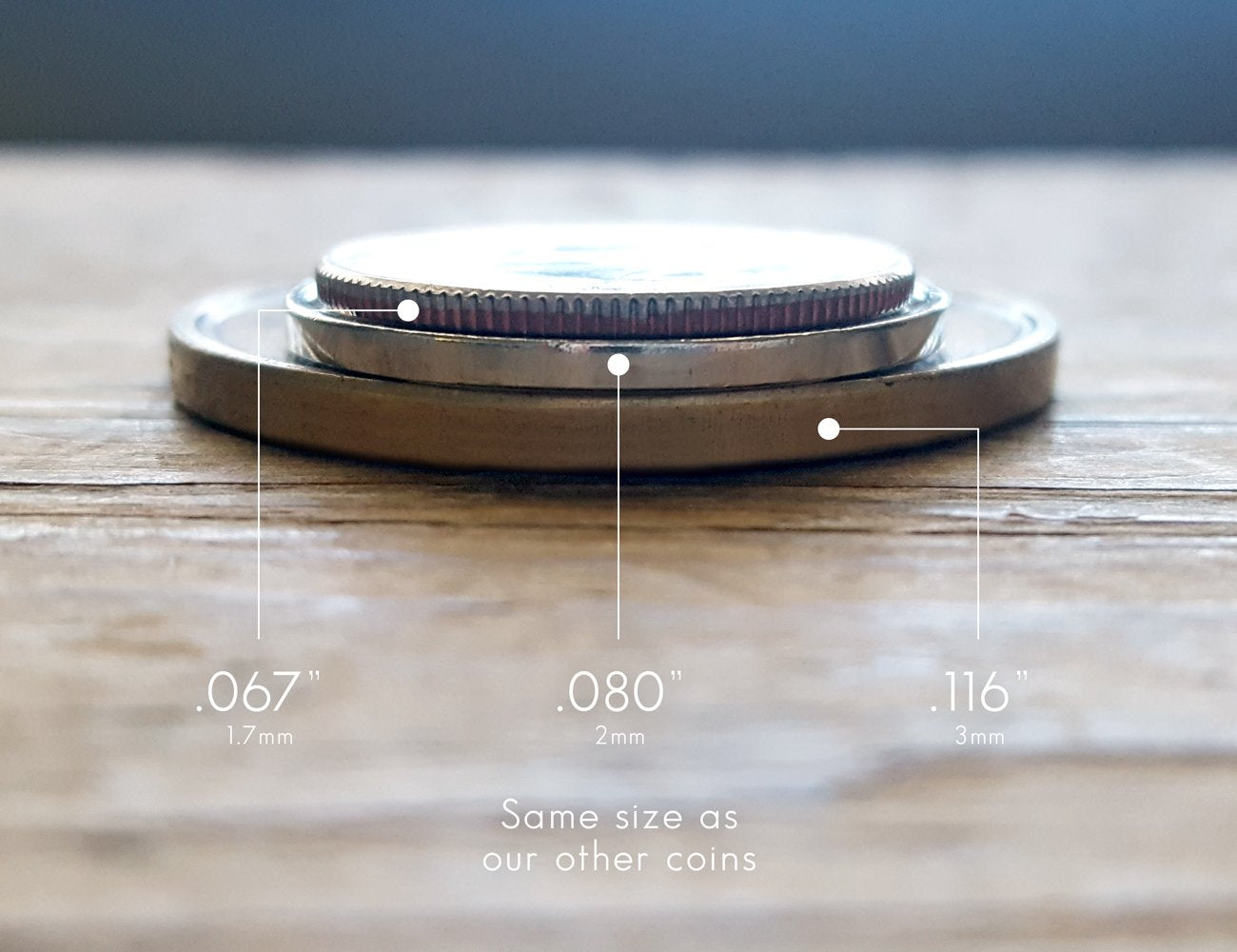 - Diameter: 1.54" (39mm) - Approximately the same as a Silver Dollar