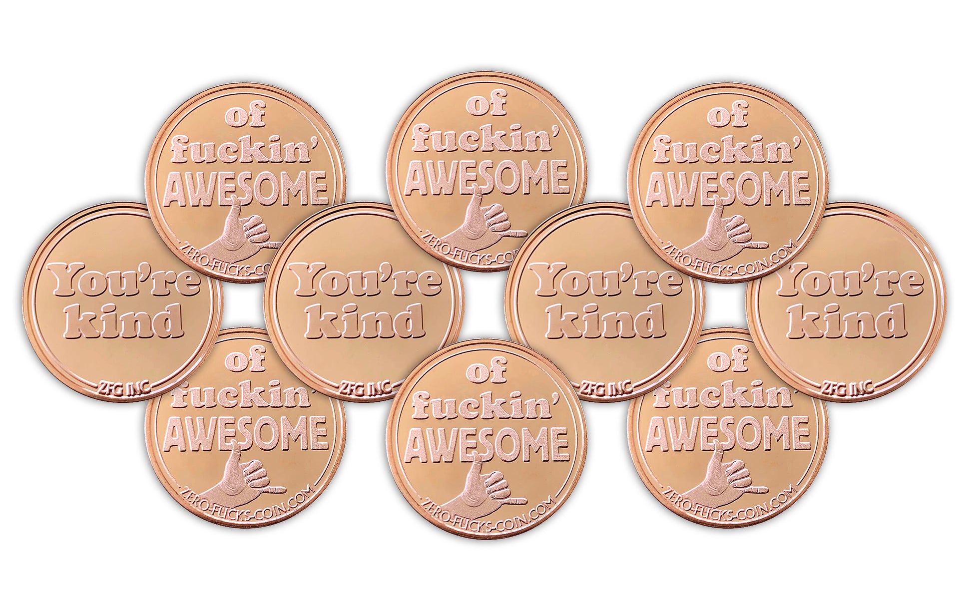 At first glance, the recipient of this coin will smile as they read the heart warming "You're Kind" on the front of this radicle token of appreciation. Only after they flip the coin over will they realize how fuckin' awesome you think they are!