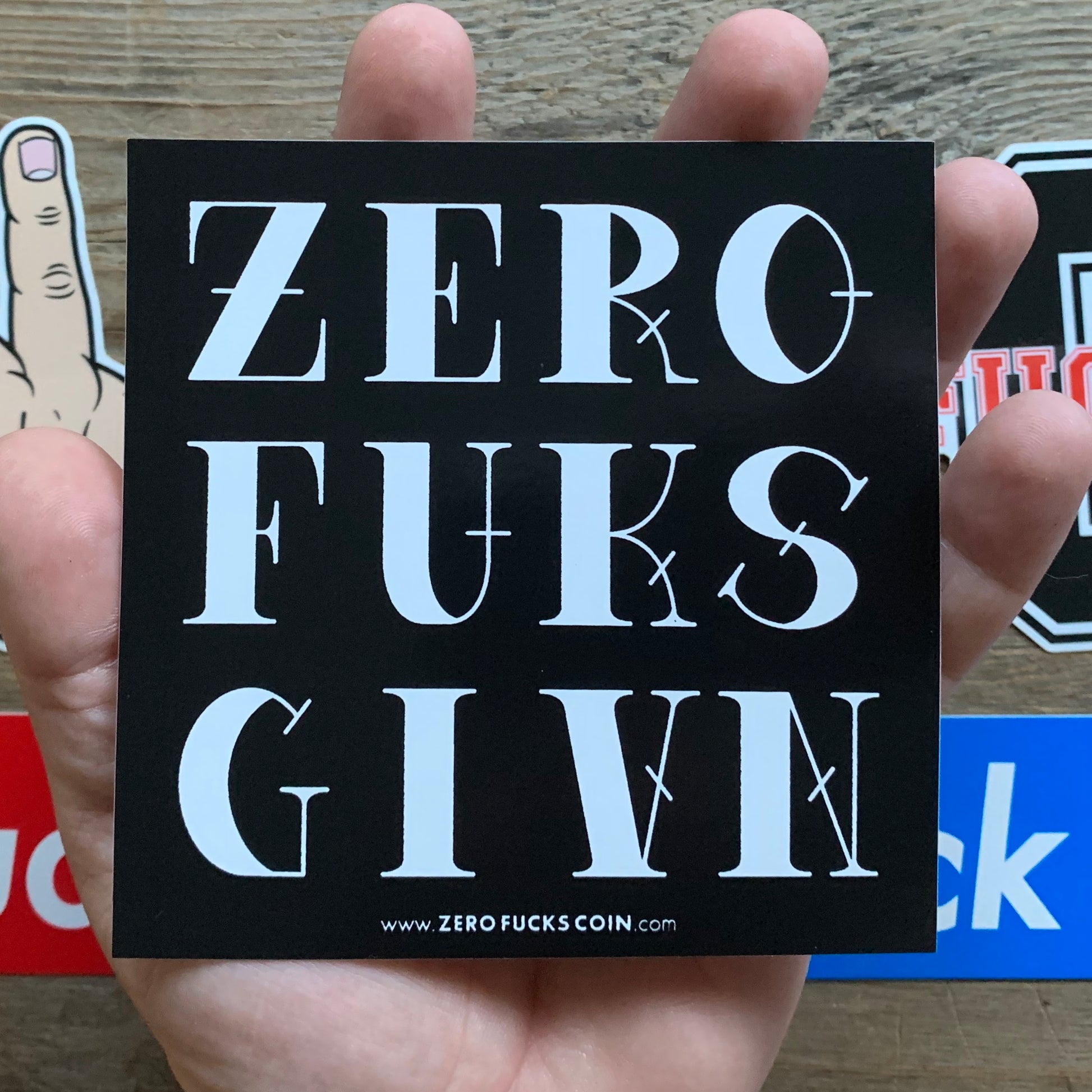 Do you give zero fucks? Slap up one of these stickers and show the world! Our Zero Fucks stickers are available separately, or you can get the 8-sticker sticker pack (which includes them all) at a discounted price: